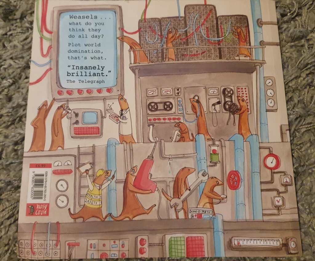 Is essentially a picture book, with a very limited story, although it does present you with the opportunity for you and your child to talk through the various pictures of what happens behind the scenes at Weasel HQ. See how much your child understands and indeed whether they have any awareness of DIY/problem solving solutions. Their ideas to fix things may give you a peek into their future career path.