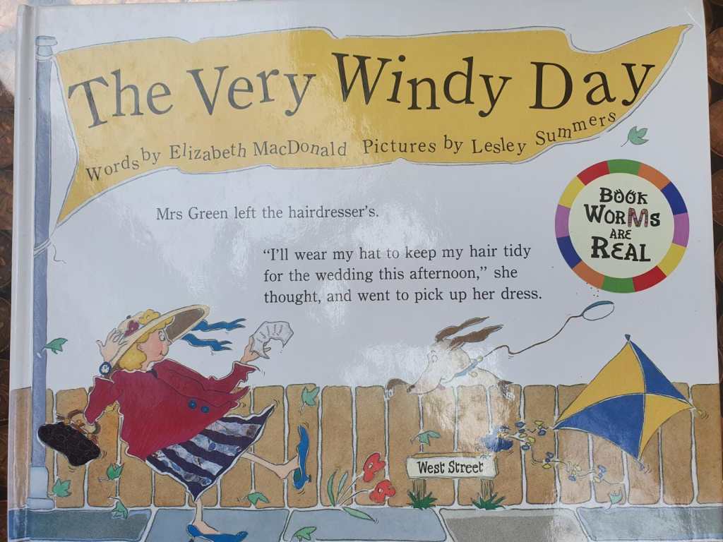 I had such high hopes for this book, the illustrations are super and do tell a story all by themselves, however I thought the story itself was a little underwhelming. It is as the title suggests about a very windy day and people running errands, struggling to hold onto their hats and losing various items along the way and throughout the day.