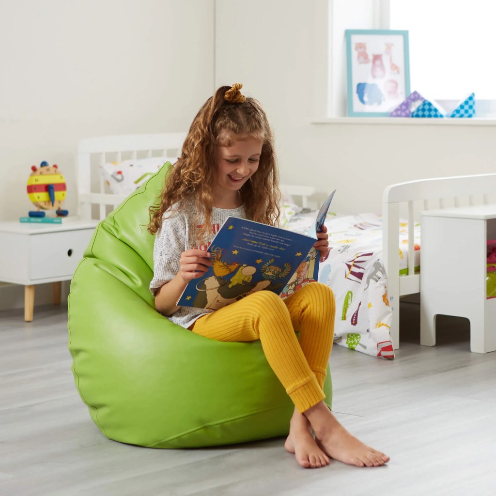 Step 4: Relaxed, happy child reading for pleasure in their home environment.